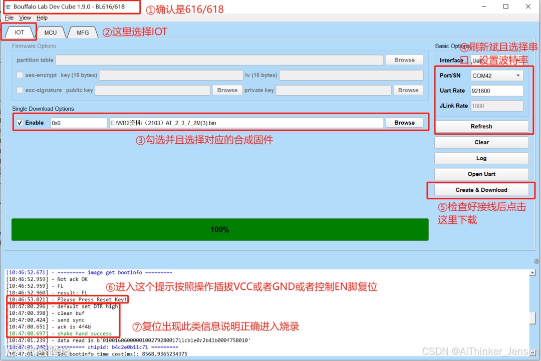 (1)如果不能进入烧录,请排查串口芯片是否支持,芯片波特率至少满足2M以上;