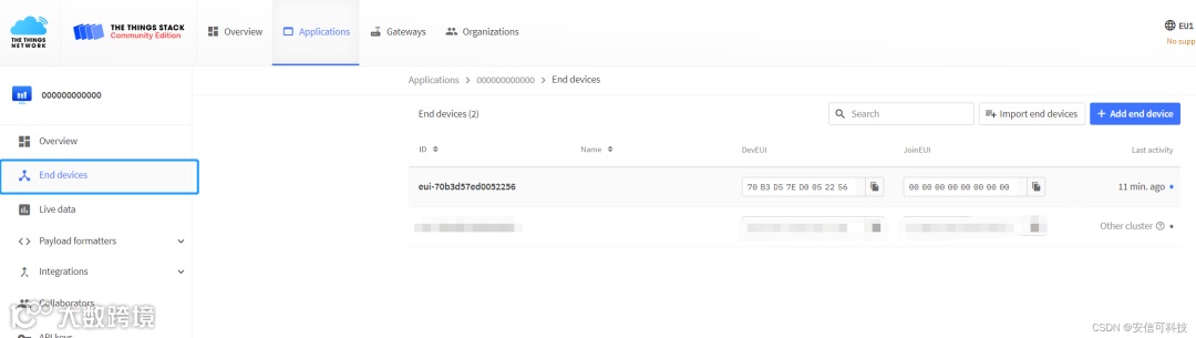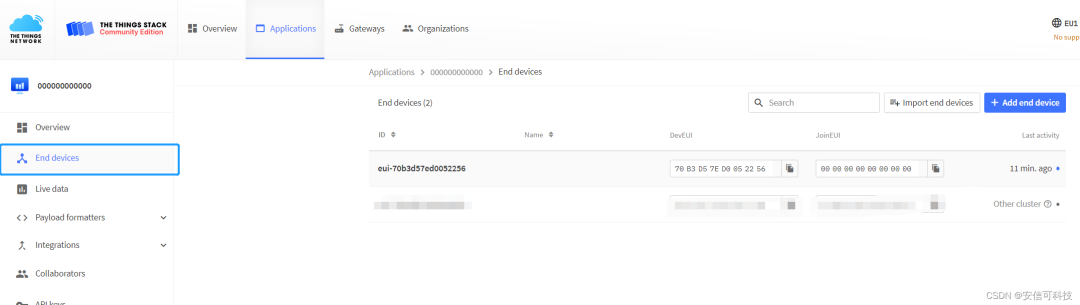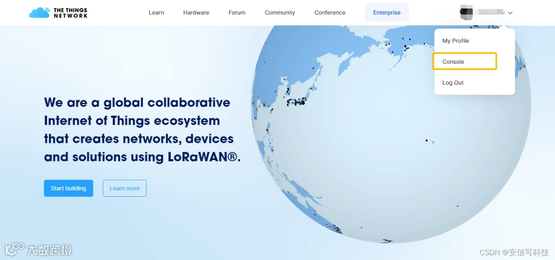 本文章将说明如何在TTN中创建应用与节点设备,配置安信可Ra-09模块连接至TTN服务,实现数据发送与接收。注: 该教程仅适用于TTN网关覆盖区域,未覆盖区域个人用户需要自建网关并将其连接至TTN服务器进行连接。