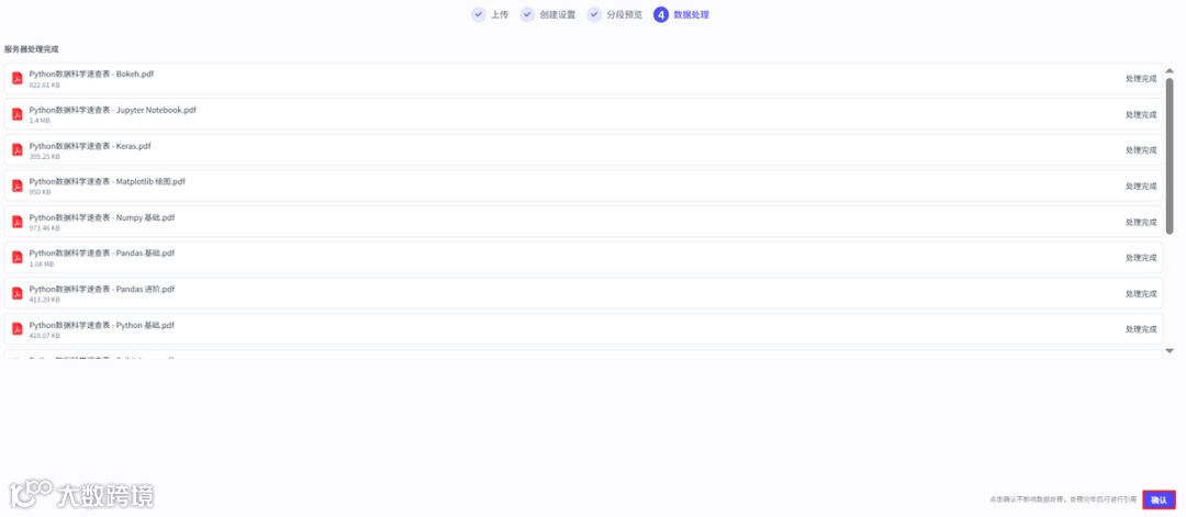 然后把本地的文档拖进去,这里我选择一些本地的Python数据科学速查表PDF文档,点击下一步。