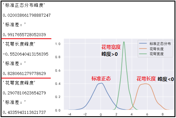 display("花萼长度峰度",df["sepal length (cm)"].kurt(),"标准差:",df["sepal length (cm)"].std())