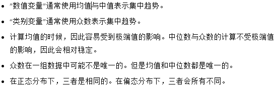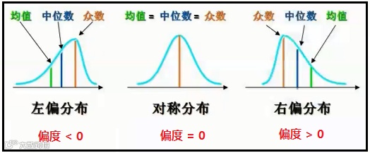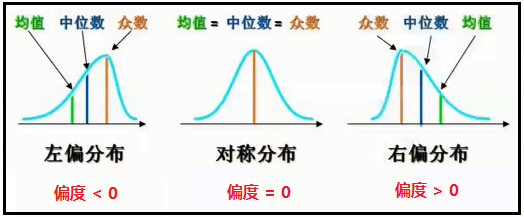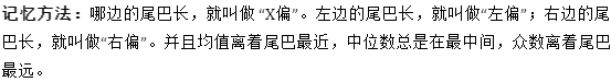 3)不同分布下,均值、中位数、众数三者之间的关系