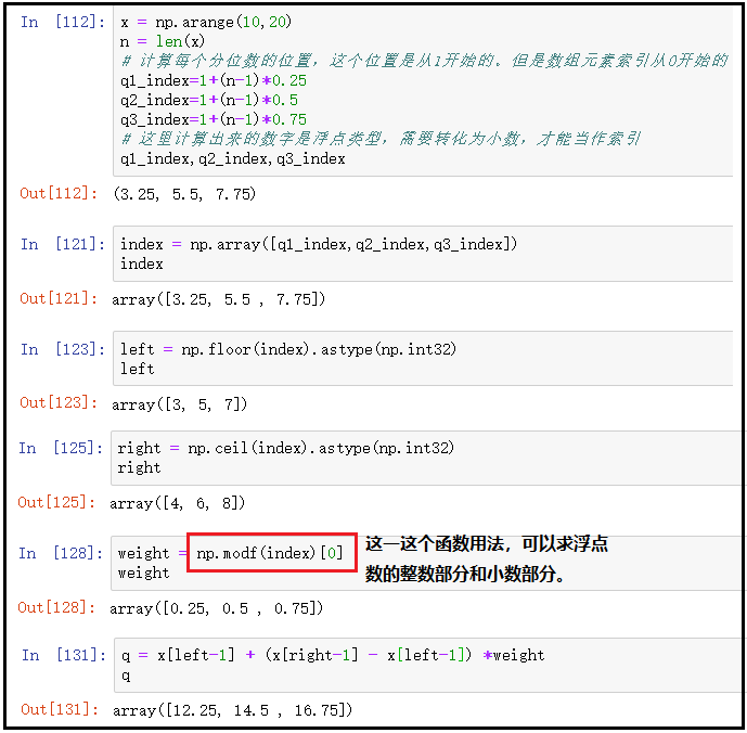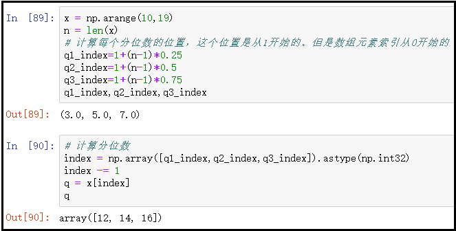np.quantile(x,[0.25,0.5,0.75])结果如下: ![]()