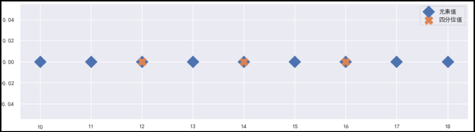 plt.plot(x,np.zeros(len(x)),ls="",marker="D",ms=15,label="元素值")