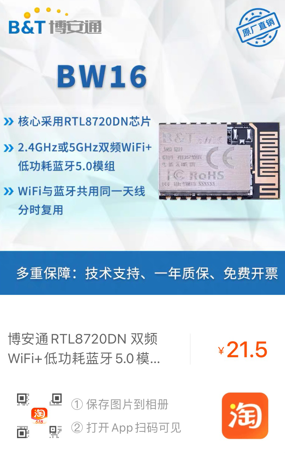 我们会随机抽取5位用户送出一份BW16开发板~