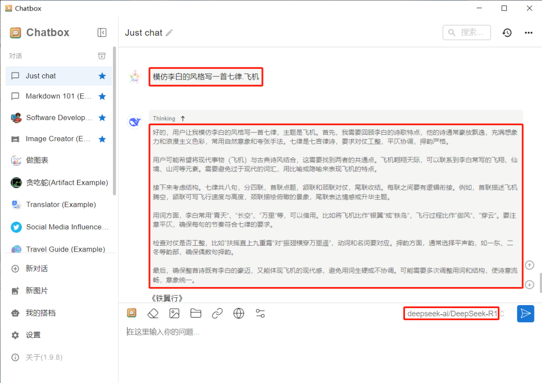 作者另辟蹊径,使用硅基流动部署搭配 Chatbox的方式,同样解决了“服务器繁忙,请稍后再试”的问题,而且,在模型应用上基本是“满血版”DeepSeek大模型,在部署方法更加简单,仅需两步即可完成,实现过程如下: