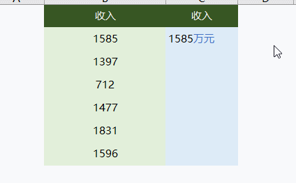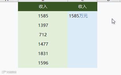 在每个数字之后,添加“万元”,首先输入一个带万元的,之后按Ctrl+E,一秒完成!