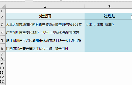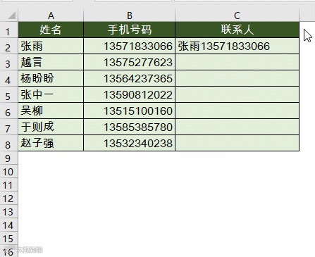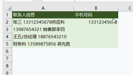 首先输入第一个姓名,之后选取它和下面空行(也可仅选取下面第一个空格),再按Ctrl+E,即可瞬间搞定拆分(提取手机号方法相同)。