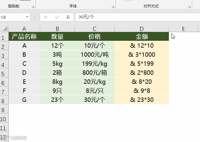 先在第一个单元格中,输入 & +空格 + 纯数字公式 ,之后选取下面的空格,按Ctrl+E(适用于2013及以上版本)。
