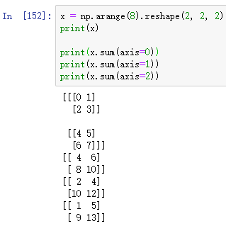 通过前面的叙述,我们已经知道axis=0表示最高维,axis=1表示次高维,依次下去。因此,对于三维数组来说,axis=0指的就是三维,axis=1指的就是二维,那么axis=2指的就是一维。