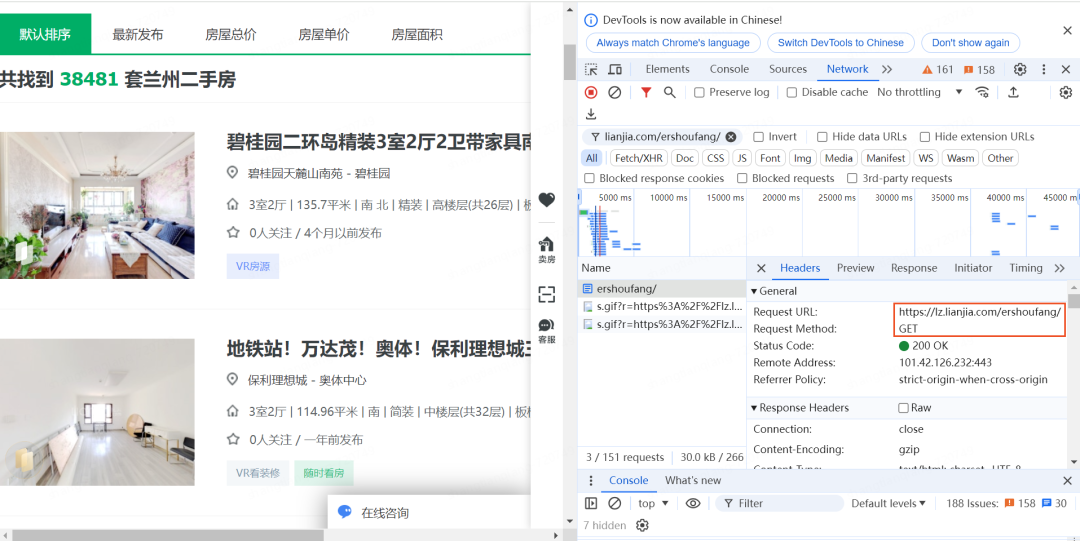 找到所有包含房屋信息的<div>标签,然后遍历这些标签,从中提取出每套房子的详细信息,如标题、小区名称、地区板块、户型、面积、朝向等,并将这些信息存储在一个列表中。