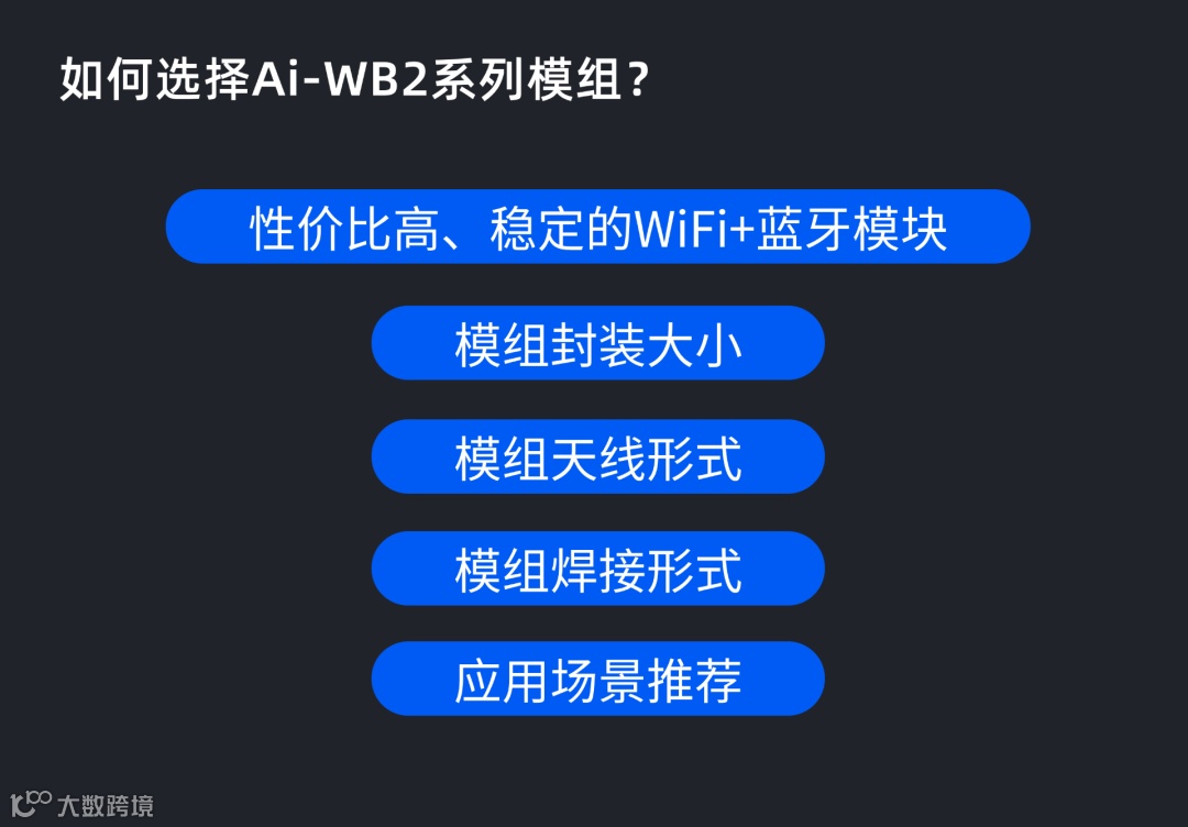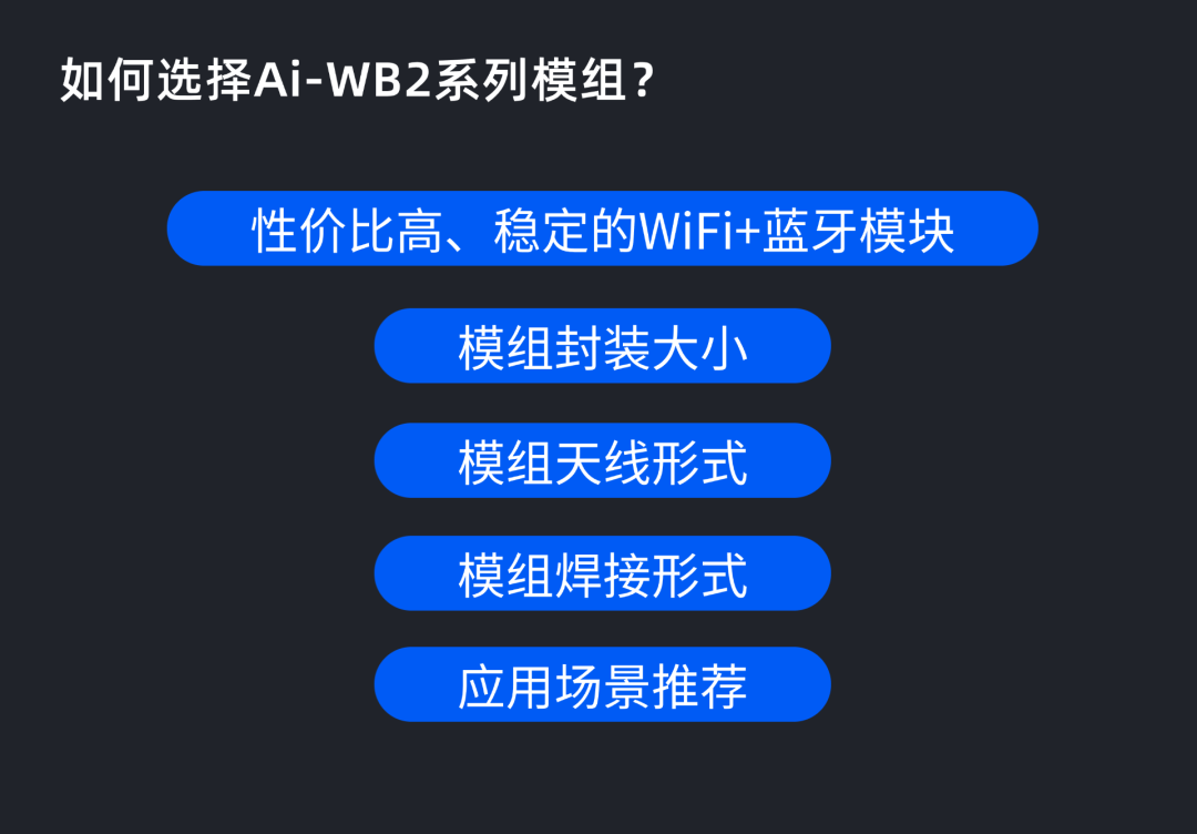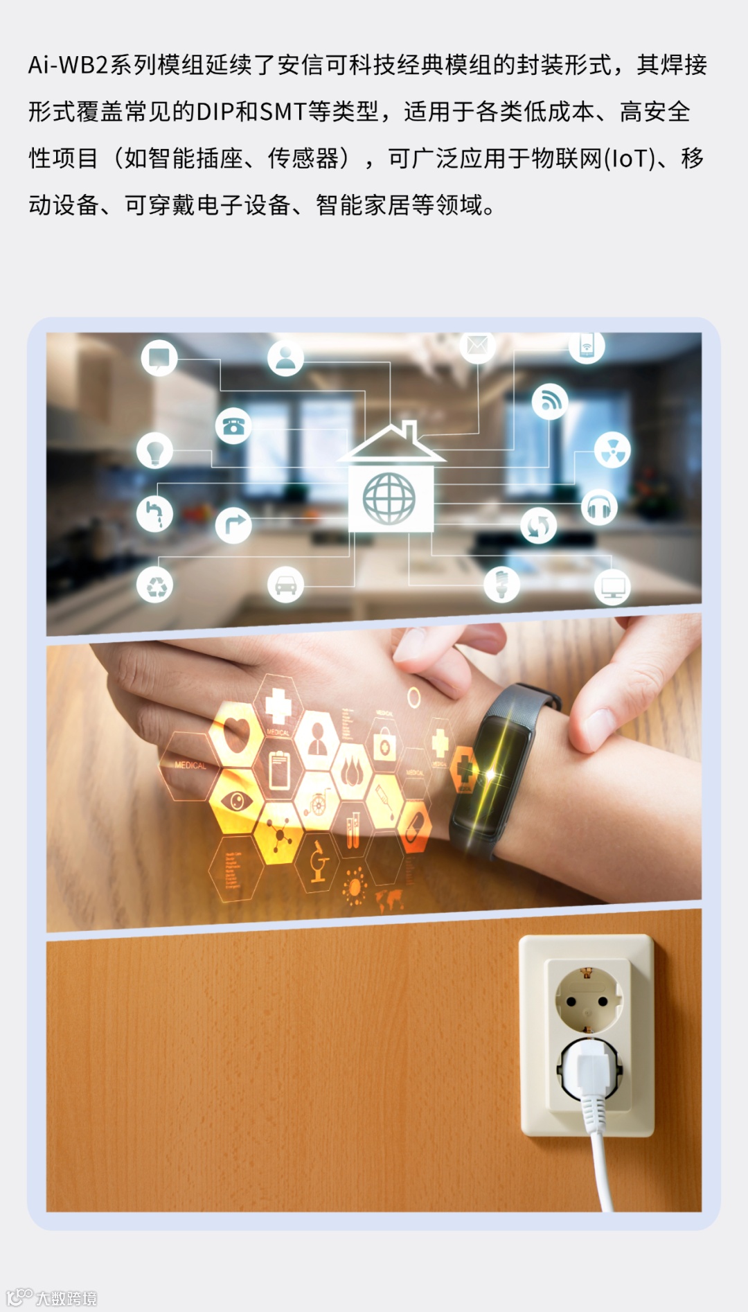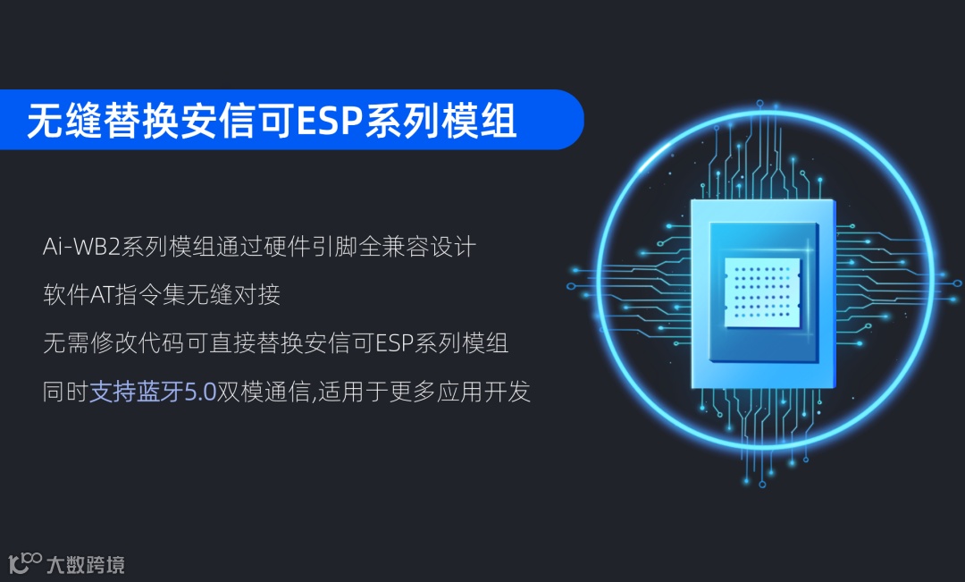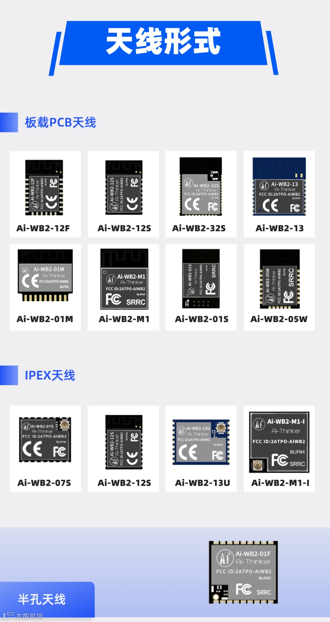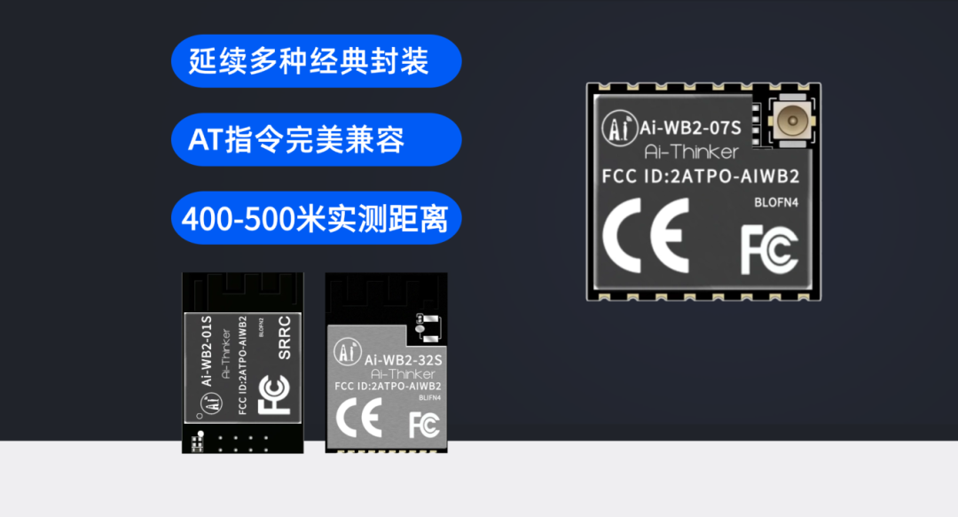 安信可Ai-WB2系列模组延续多种经典封装,无需硬件重制,可以实现硬件快速升级。