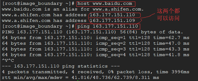 ping www.baidu.com 测试虚拟机是否连接上Internet