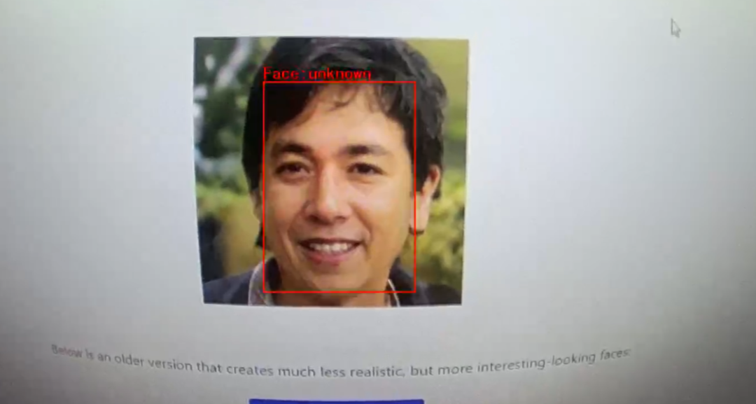 人脸识别神经网络模型检测到的人脸最初被标记为 “unknown”,需要先用名字注册人脸才能被识别。