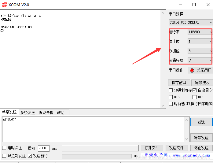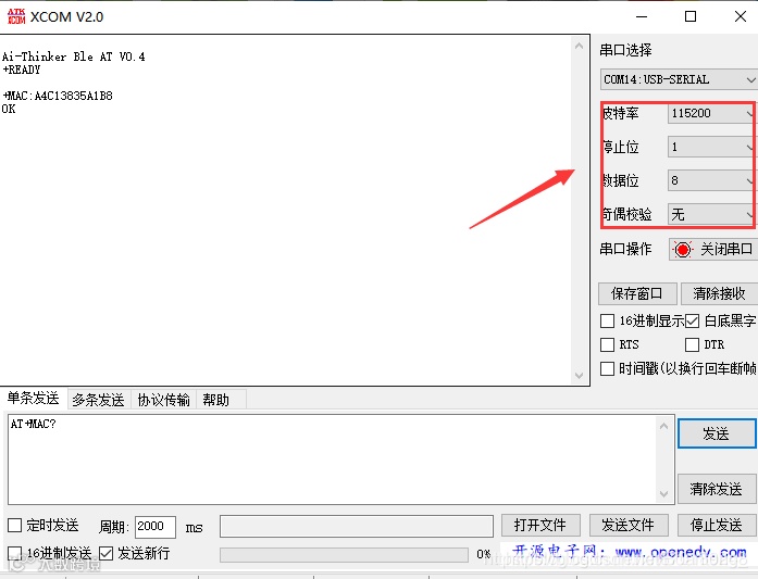 默认波特率等设置,上电后会有信息打印,如下图所示: