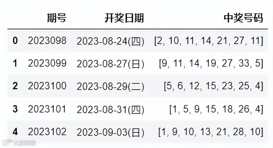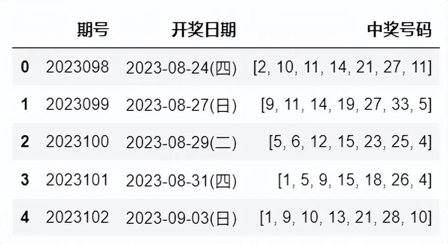 df=pd.read_excel(r'D:\系统桌面(勿删)\Desktop\双色球中奖号码.xlsx',usecols=['期号','开奖日期','开奖号码'],dtype={'期号': str,'开奖号码': str})