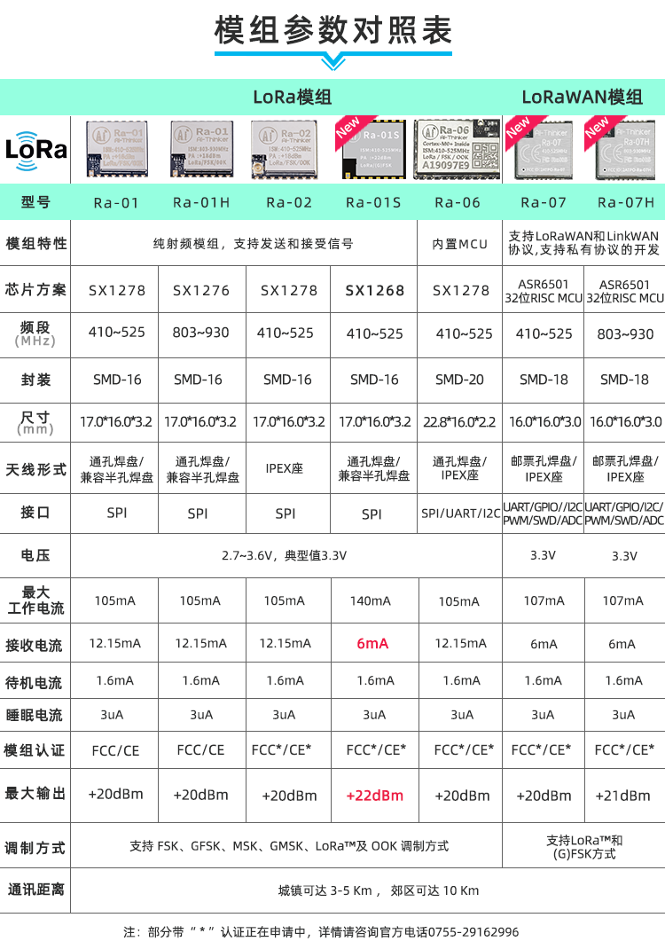[LoRa模组选型表]
