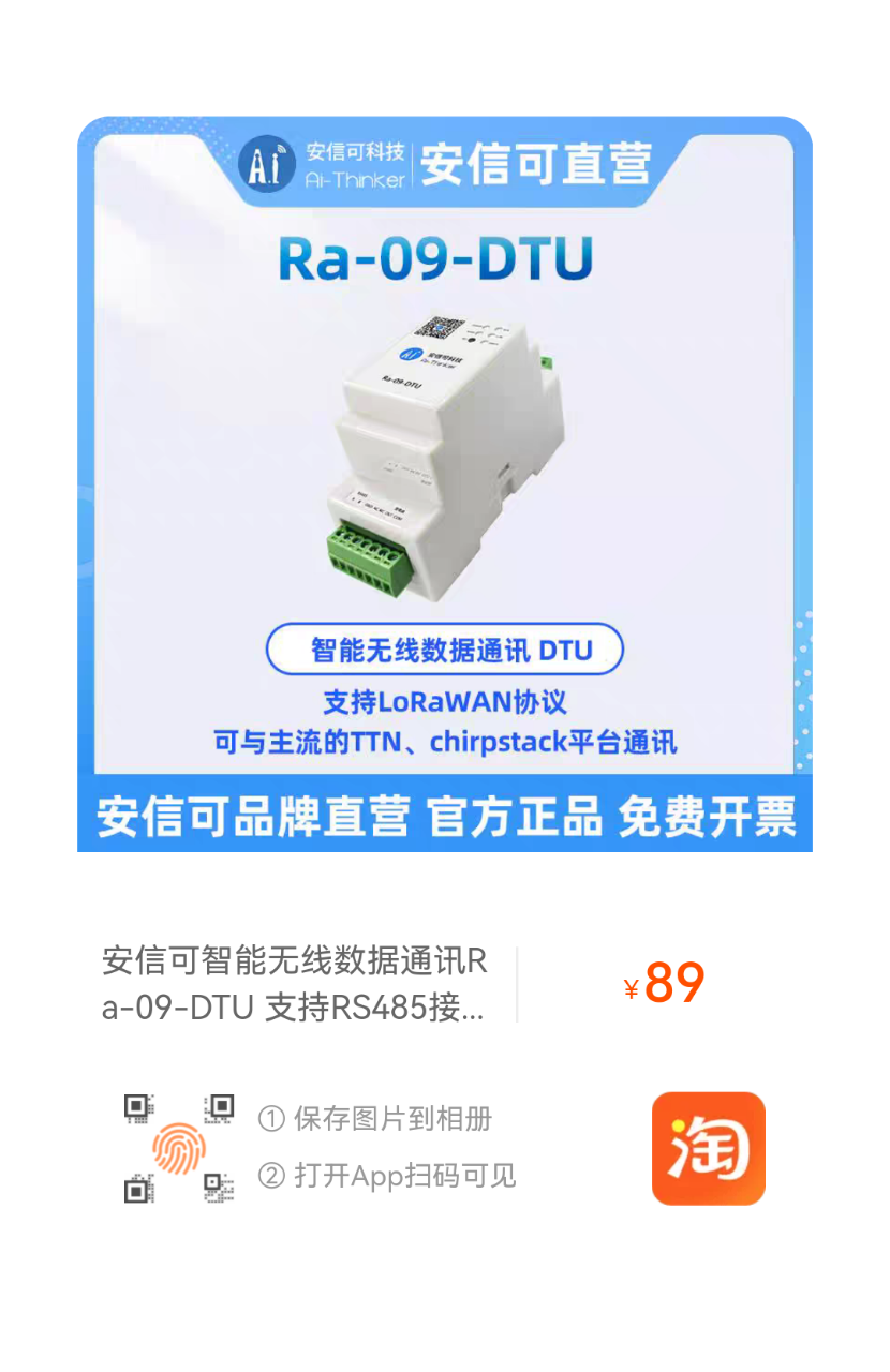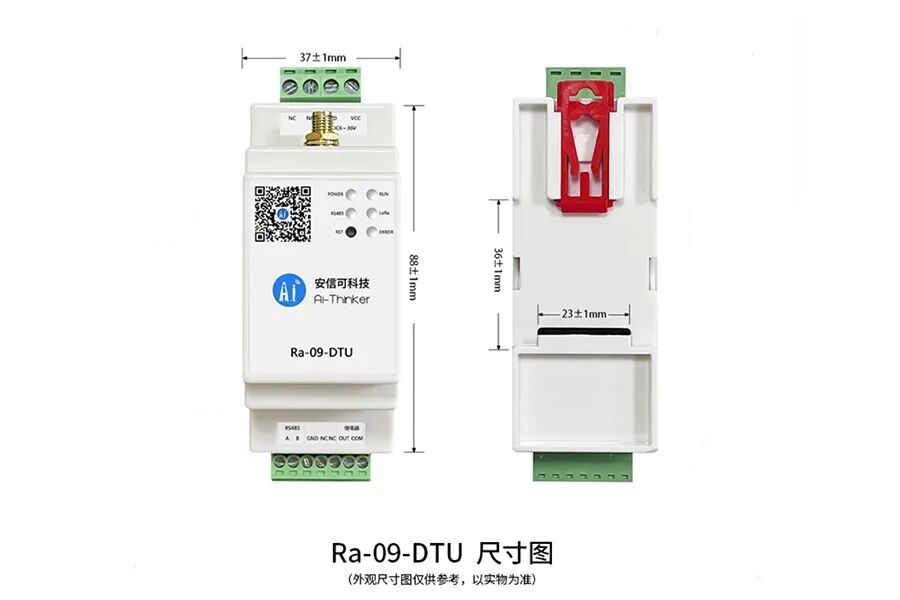 Ra-09-DTU 是由安信可科技开发的一款智能无线数据通讯DTU,采用Ra-09 LoRa 模组,利用 LoRa 无线技术可用于超长距离扩频通信。其芯片 STM32WLE5CCU6 是通用的 LPWAN 无线通信SoC,集成了射频收发器、调制解调器和 32-bit Arm® Cortex®-M4 MCU。该 MCU 采用ARM内核,工作频率可达 48MHz。支持 LPWAN 用例下的 LoRa 调制和传统的(G)FSK 调制;同时发射机还支持 BPSK 调制和(G)MSK 调制,接收机支持(G)MSK 调制。带有标准RS485硬件接口。