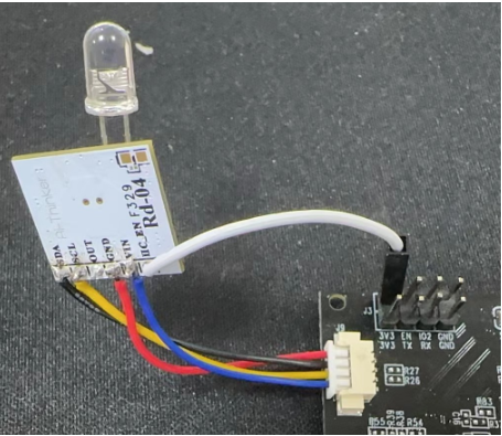 将 Rd-04 与 S1 进行连接,后续代码将 GPIO_0 设置为 SDA,GPIO_1 设置为 SCL。注意:Rd-04 有一个 I2C 的使能引脚,在配置时需要将 I2C_EN 拉高,我将其连接到 3V3。