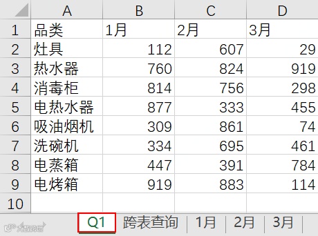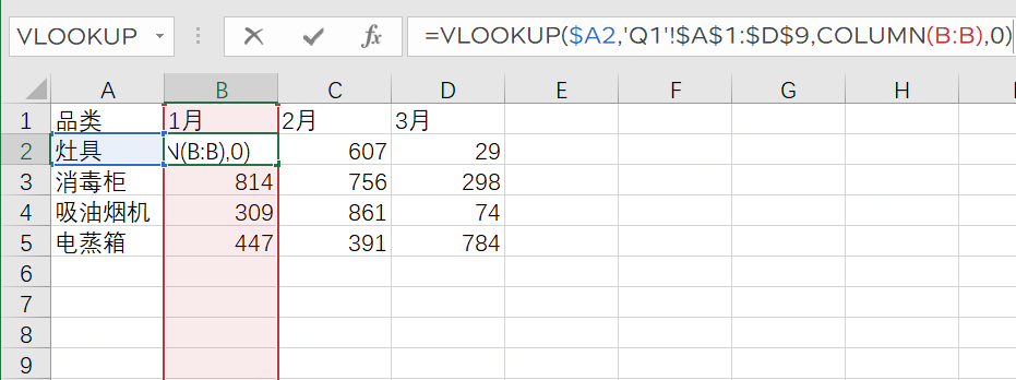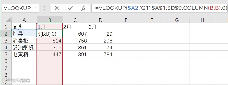 使用VLOOKUP+COLUMN函数实现多列同时跨表查询。