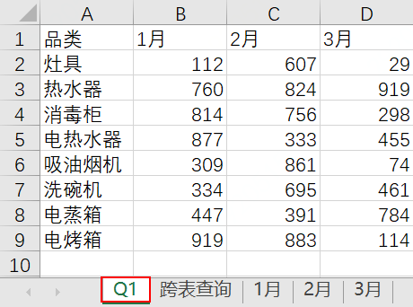 如下是原始数据,使用VLOOKUP跨表查询功能。