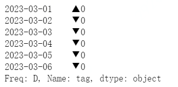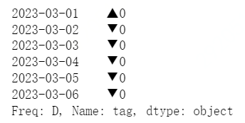 #使用函数实现tag列,把H换成大于0,L换成小于0def HL_map(x):if x == 'H':return '▲0'elif x == 'L':return '▼0'df['tag'].map(HL_map)