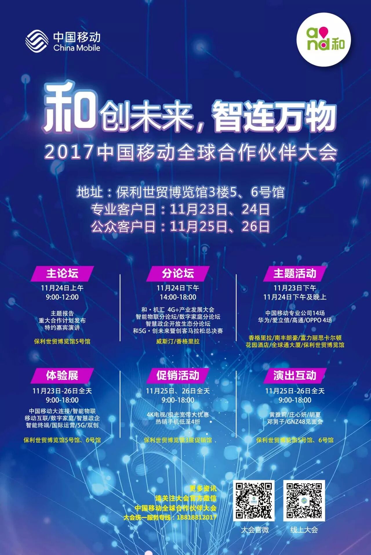 新时代,新征程。11月23-26日,2017中国移动全球合作伙伴大会即将在广州保利世贸博览馆拉开帷幕,安信可科技将与中国移动一起开启万物智连的大航海时代。