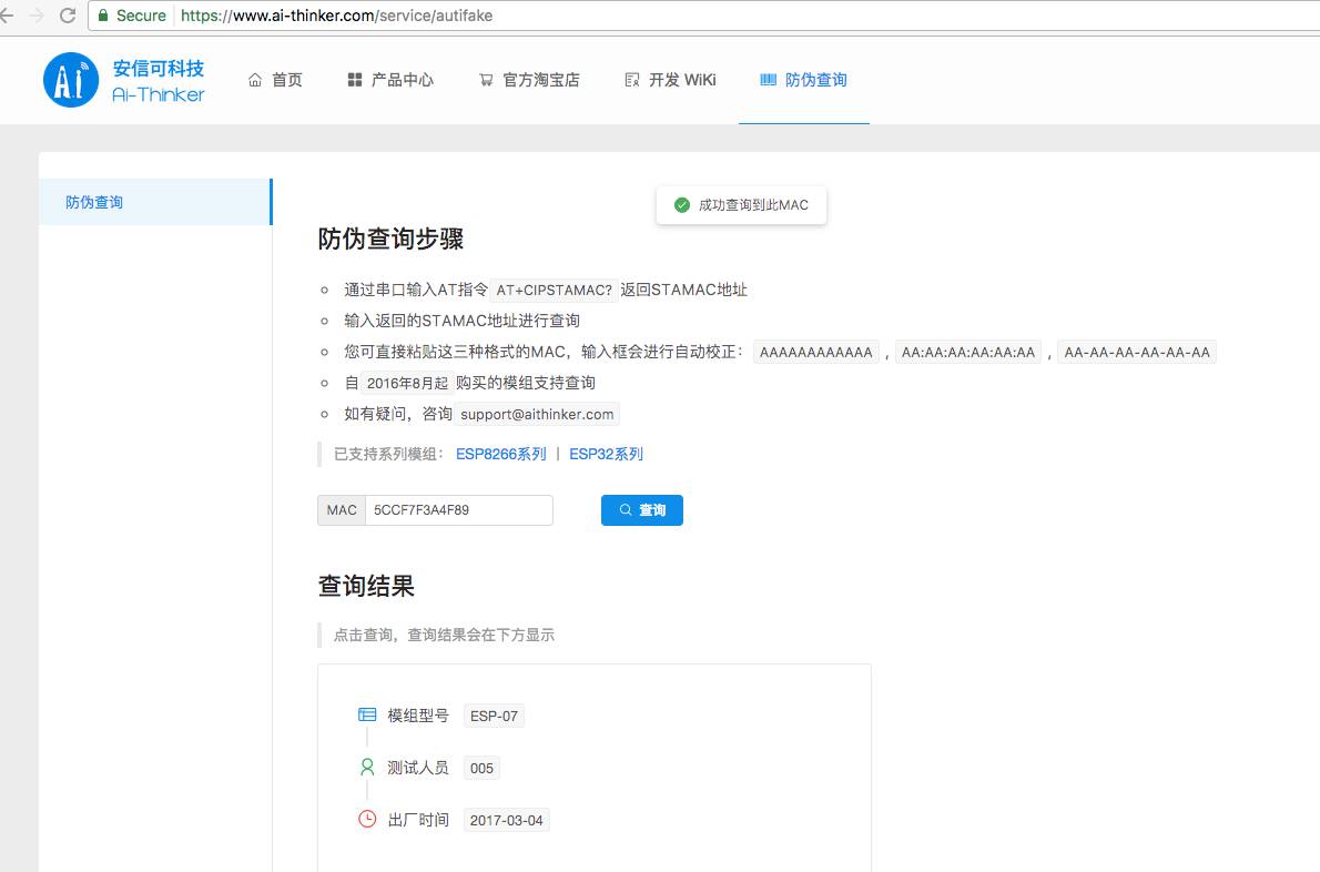 3、按照提示输入模组的 STAMAC 点击“查询”即可。