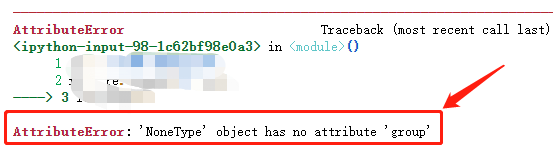 search()函数与match()函数相同点:它们一旦匹配上了,就立即返回结果,而不再往后面匹配(即使后面能匹配上)。如果都匹配不上,会出现同样的错误,如下图所示: