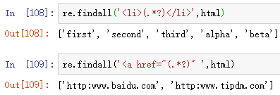 可以发现:finadll()函数会直接返回所有匹配对象,组成的列表(记住:返回的是列表),不像search()函数与match()函数,还需要调用group()函数,这个大家一定要注意。