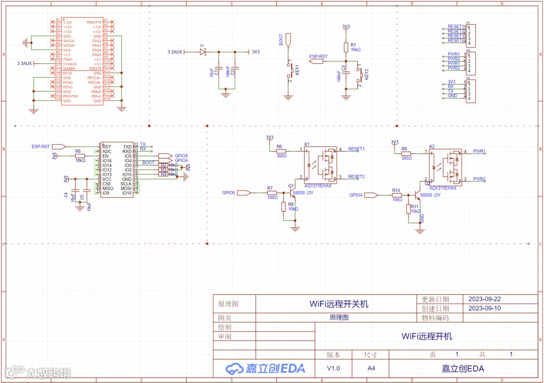 2、 硬件光耦隔离,两路输入。一路开机,一路复位;