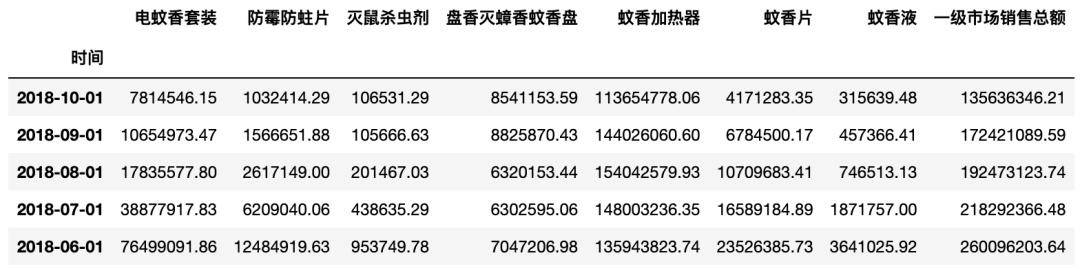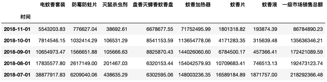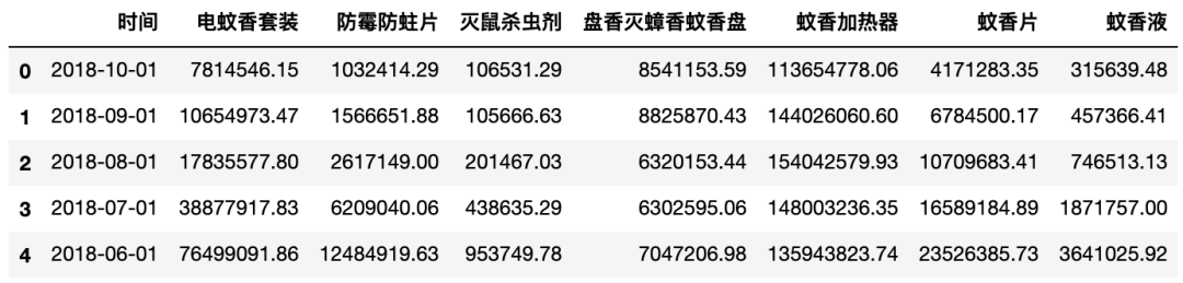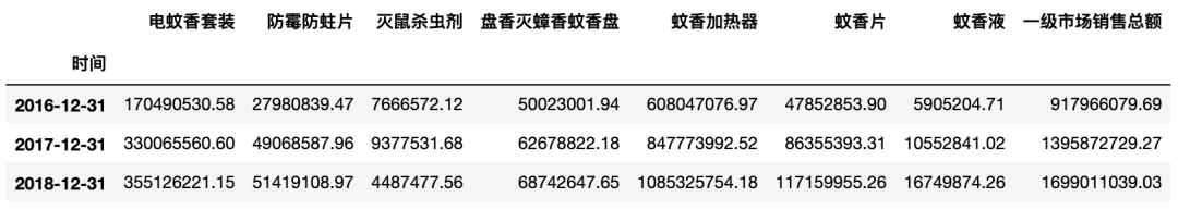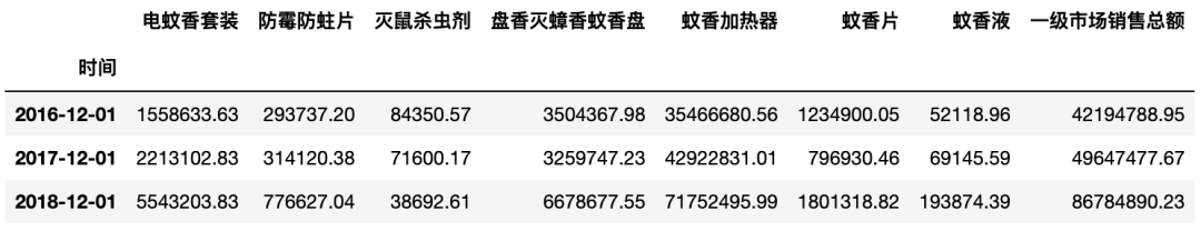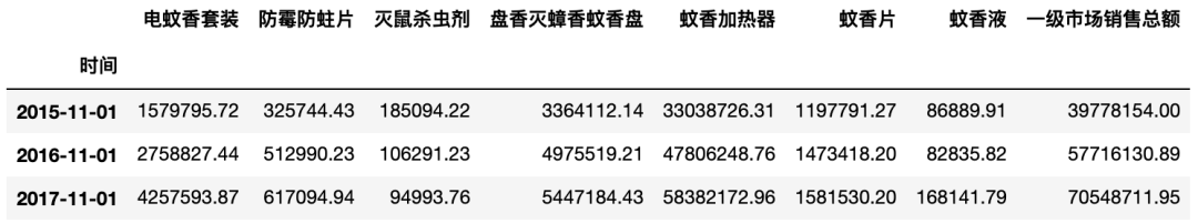 wxy=pd.read_excel('./baier/电商案例数据/驱虫剂市场/蚊香液市场近三年交易额.xlsx')