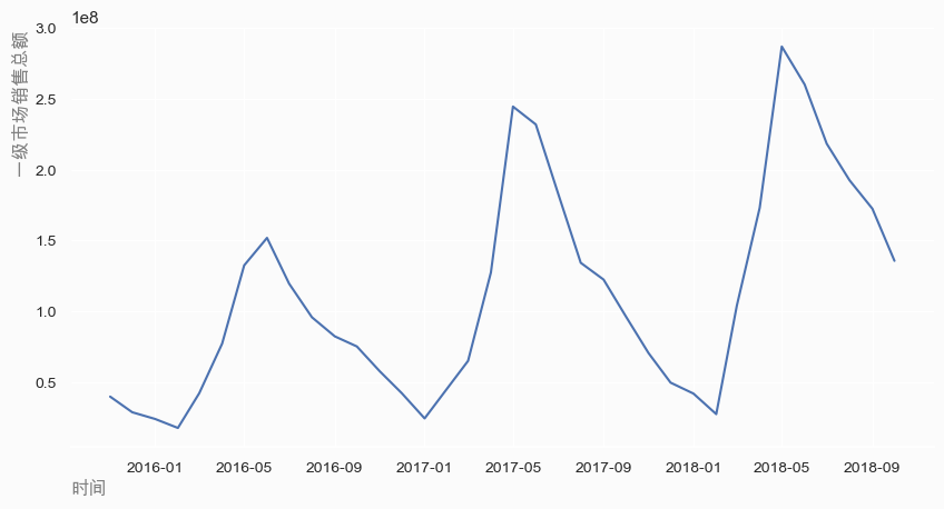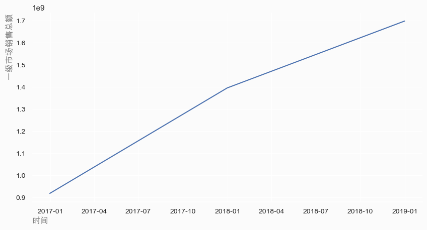 将二级市场到交易额按照月份汇总到一起,形成一级市场到交易数据,用来分析整个一级市场(宏观市场)到市场容量走势