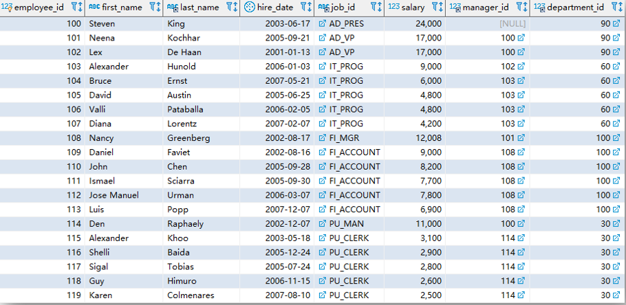 右外连接(Right Outer Join)返回右表中所有的数据;对于左表,返回满足连接条件的数据,如果没有就返回空值。右外连接与左外连接可以互换,以下两者等价: