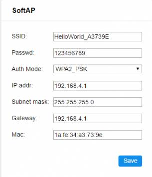 通过web配置模组,配置WiFi参数。