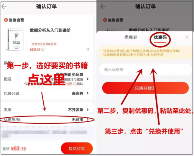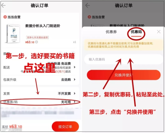 步骤三,点击优惠券/码处