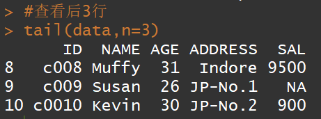 #查看后3行tail(data,n=3)