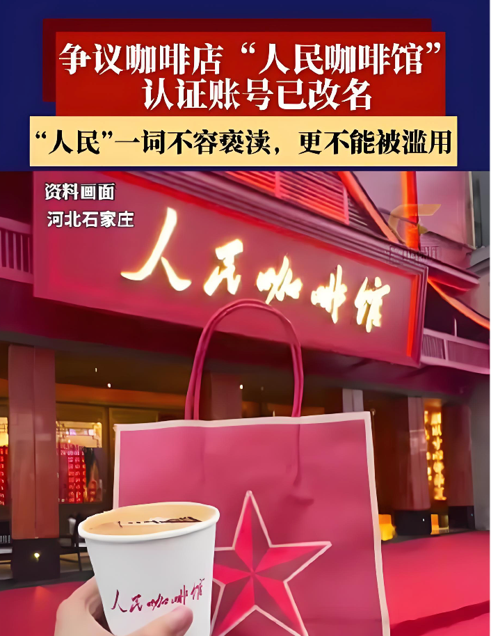 有网友表示,“人民”一词具有强烈的公共属性和政治内涵,这样被用于商业咖啡馆的标识,令人感到突兀和不适。