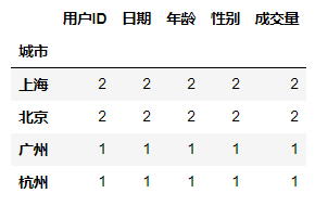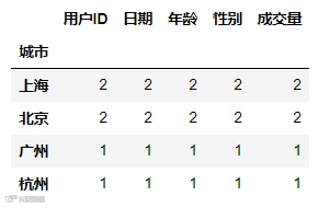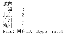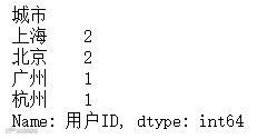 #按照单列分组df.groupby('城市')['用户ID'].count()