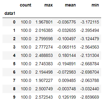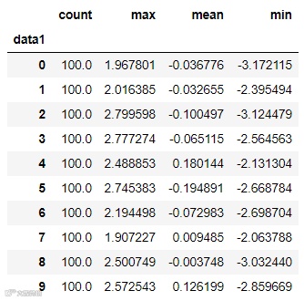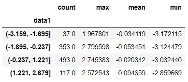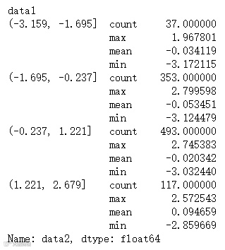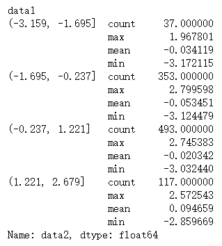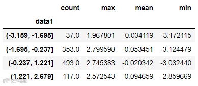 def get(group):return {'min':group.min(),'max':group.max(),'count': group.count(),'mean': group.mean()}df.data2.groupby(quariles).apply(get)