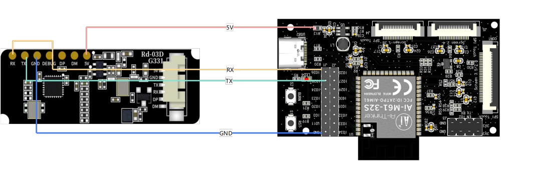Rd-03D与AiPi-DSL数据通讯使用的是串口,所以它们的连接如下: