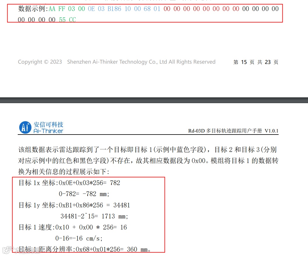 Rd-03D的串口数据解析参考安信可Rd-03D用户手册:Rd-03D多目标轨迹跟踪用户手册.pdf