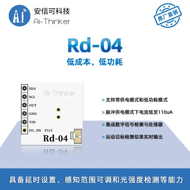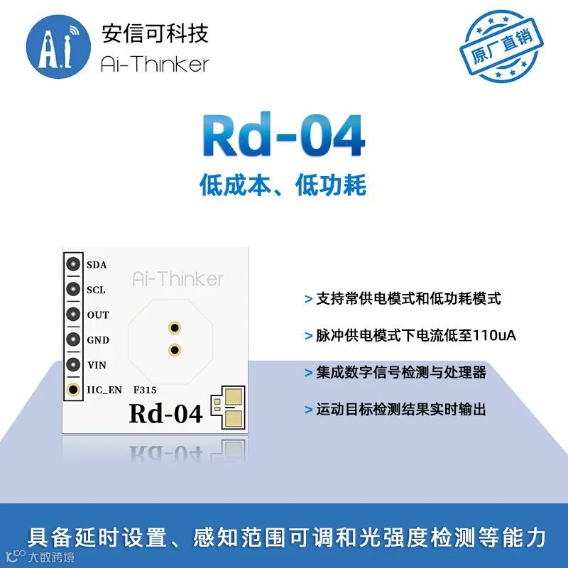 随着智能化时代的到来,人工智能、智能家居、智能安防等领域的快速发展,对于传感器技术的需求也越来越高。因此,安信可相继推出过24GHz人体存在感应WiFi+BLE+雷达模组Rd-01,24GHz单雷达模组Rd-03。今天,安信可又一新款10GHz雷达模组Rd-04正式推出,支持感应人体微动、运动。