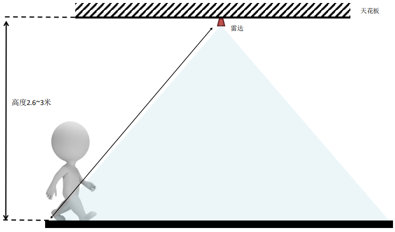 Rd-04雷达模组的感知角度为±50°,支持挂壁与挂顶安装。挂壁安装感知距离为径向6.5米,挂顶安装感知距离为半径2.5米,安装灵活,探测范围大。