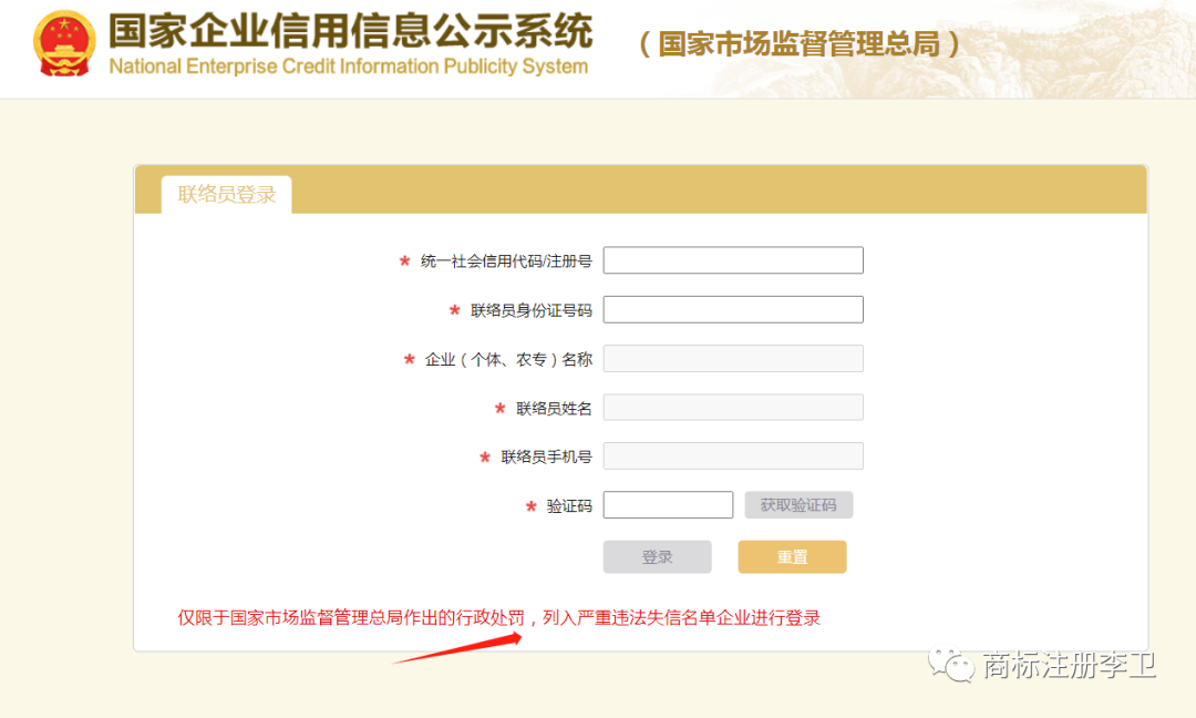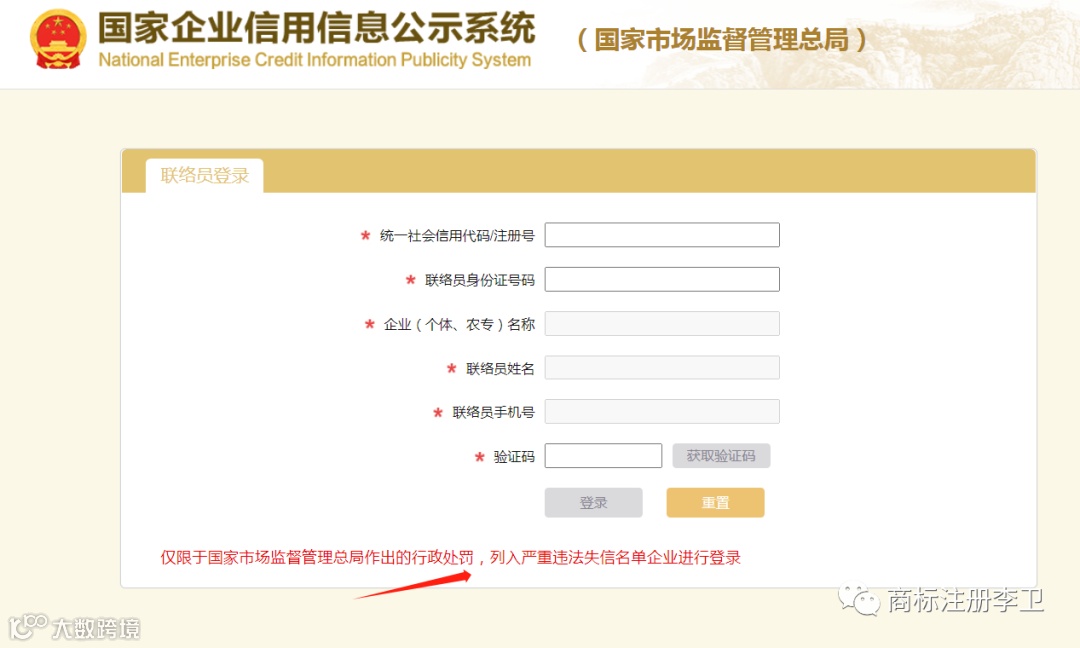 仅限于国家市场监督管理总局作出的行政处罚,列入严重违法失信名单企业进行登录: