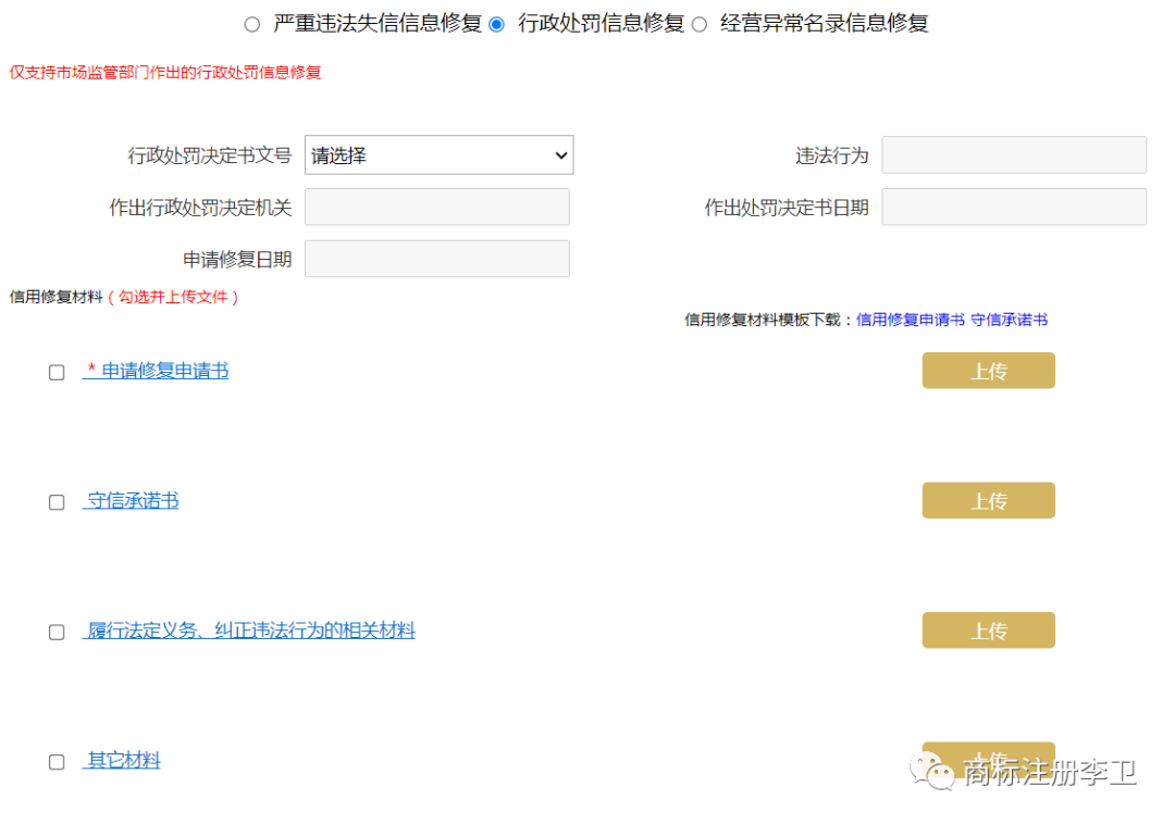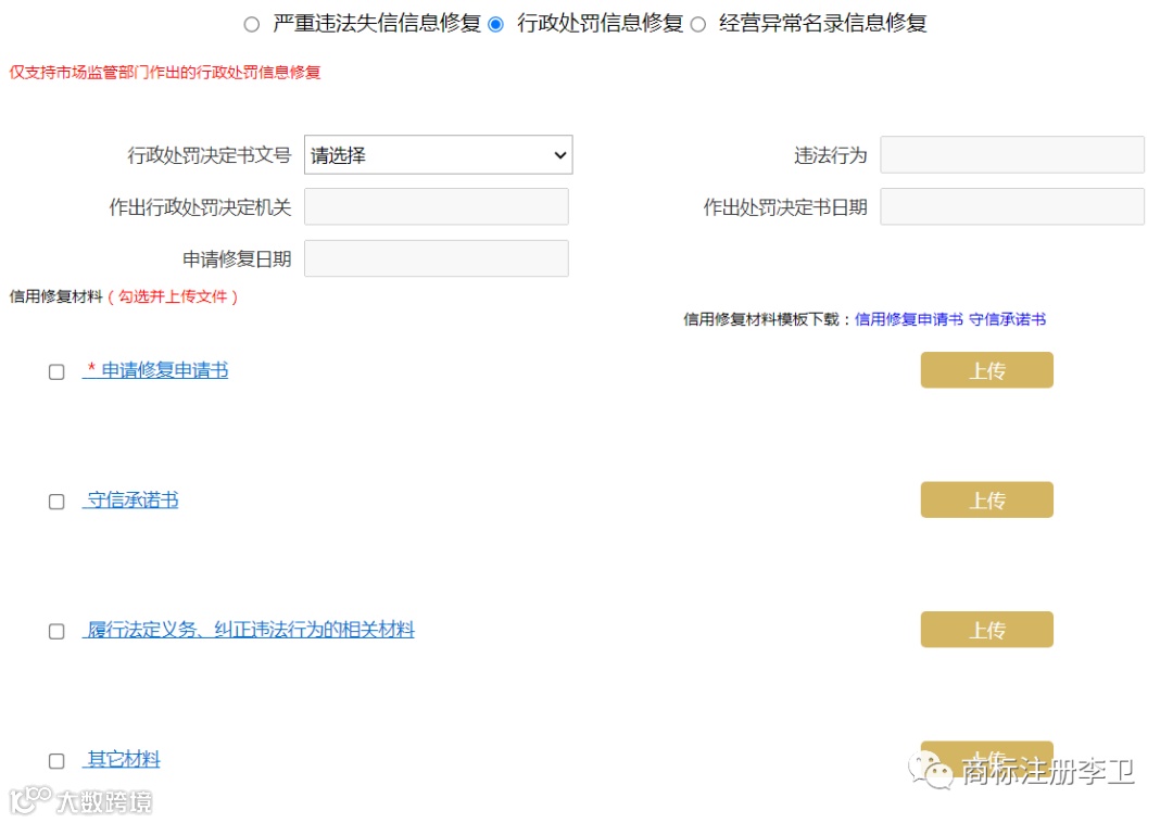 根据《信用修复管理办法》第五条 被列入经营异常名录或者被标记为经营异常状态的当事人,符合下列情形之一的,可以依照本办法规定申请信用修复: