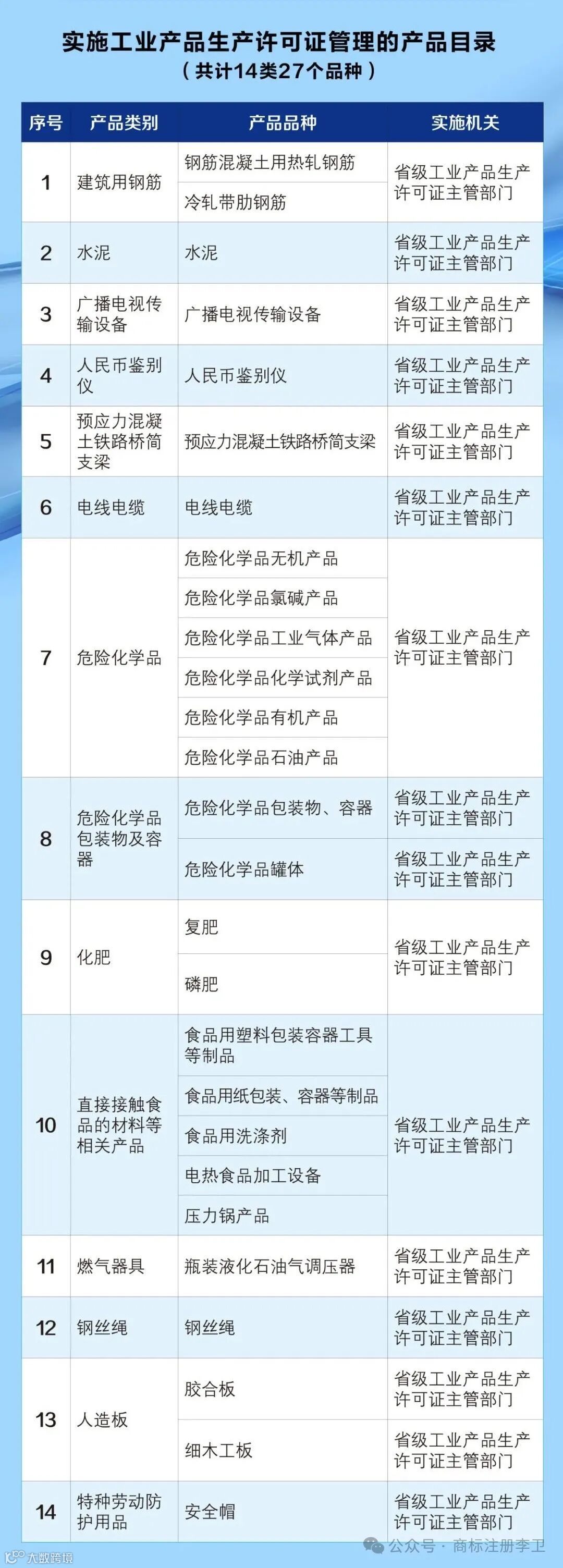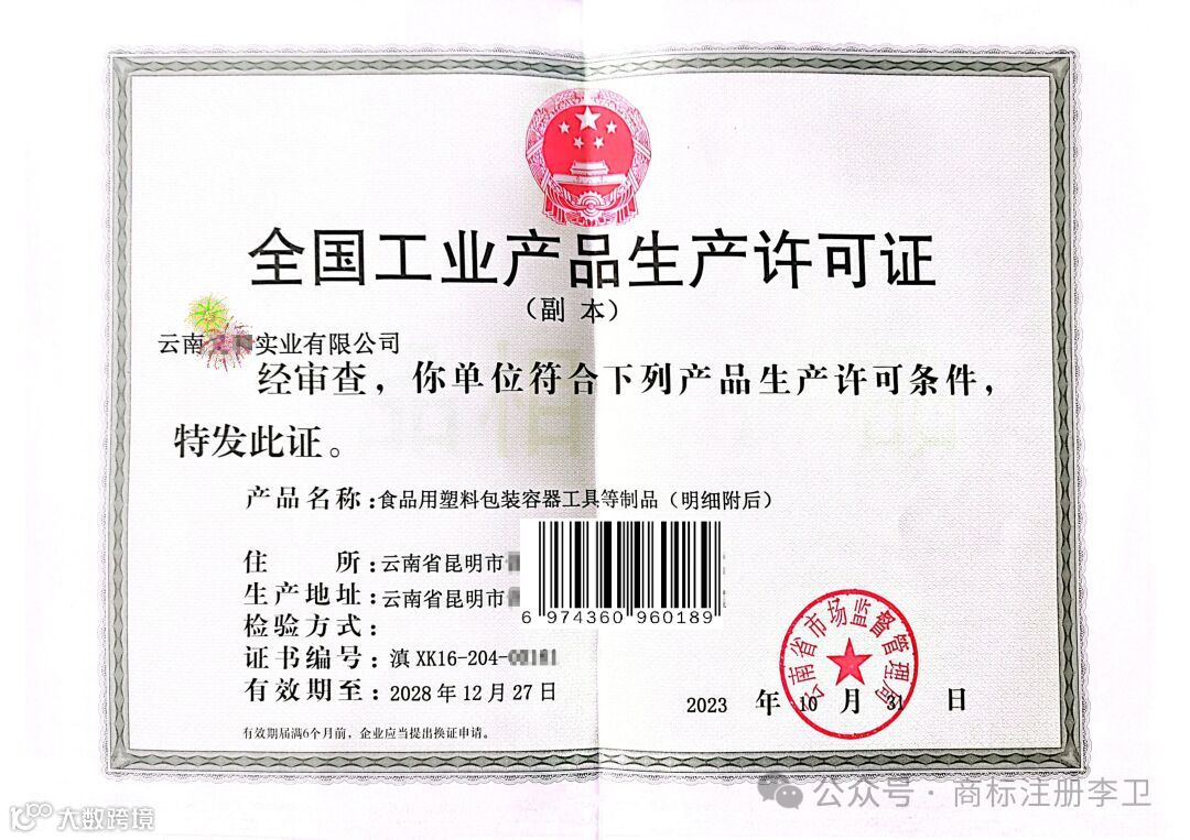 商标注册李卫工业产品生产许可证是生产许可证制度的一个组成部分,是为保证产品的质量安全,由国家主管产品生产领域质量监督工作的行政部门制定并实施的一项旨在控制产品生产加工企业生产条件的监控制度。该制度规定:从事产品生产加工的公民、法人或其他组织,必须具备保证产品质量安全的基本生产条件,按规定程序获得《工业产品生产许可证》,方可从事产品生产。没有取得《工业产品生产许可证》的企业不得生产产品,任何企业和个人不得无证生产。