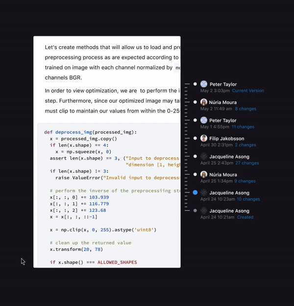 另外,它还提供了代码review功能,我们可追踪团队成员对模型变现的评论,并且如果我们改动了代码也会同步通知评论者。