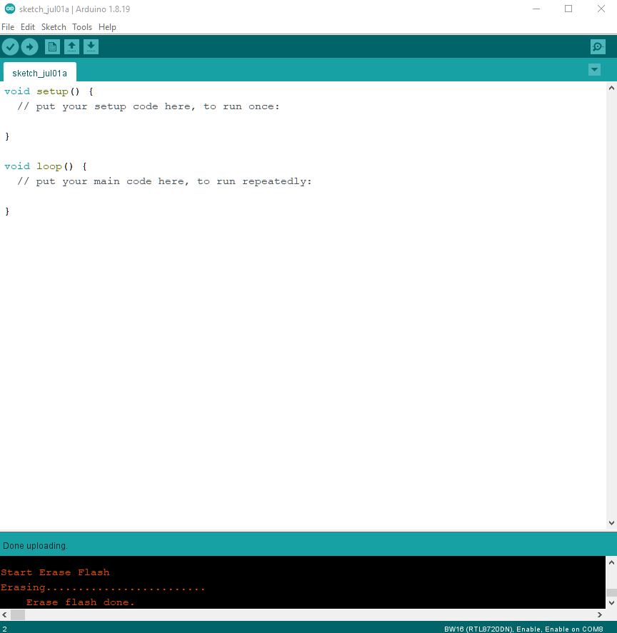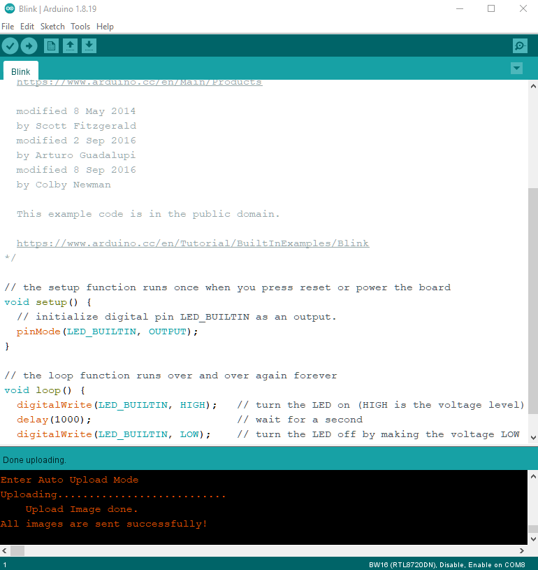 从 1.6.5 版本开始,Arduino IDE 支持第三方硬件。Arduino IDE用于在BW16上开发应用程序,以及Arduino基本范例(refer to the basic example link)。