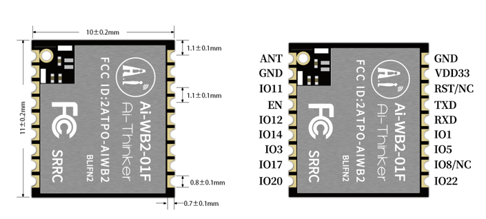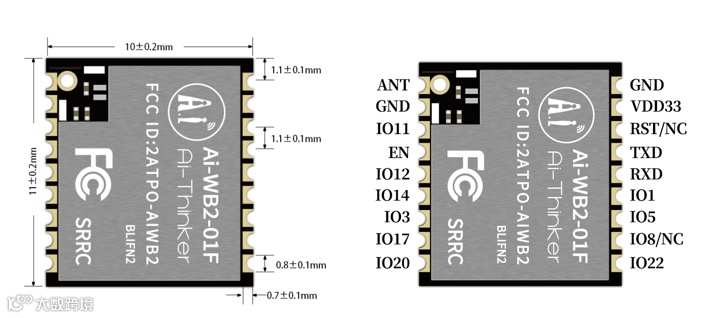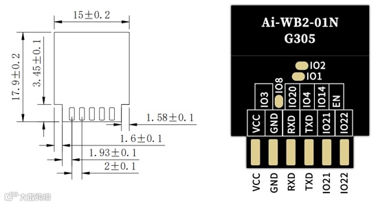 Ai-WB2-01N是单3.3V供电的,采用插卡式焊接方式,可以垂直于客户主板安装,节省客户主板面积,特别适用于插座、开关、灯等产品。