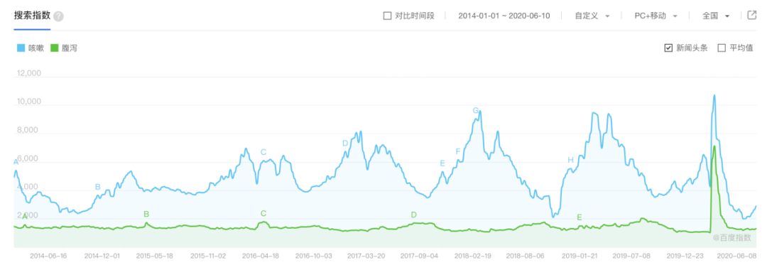 但如果我们把时间拉长,就会发现其实每年到了年初这两个关键词都会有一个小高峰,其实每年1-2月,就是流感季节而已。